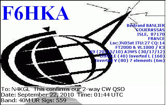 I was very surprised and pleased to work F6HKA Bert of France during SKCC Sprints. I was running 1 watt on the IC-703 and using my doublet. I don't chase DX but very pleased to run into some. Thanks Bert!
