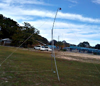 On another note I used one of my PVC A Frame masts (13 foot) to hold up one end of the end fed dipole. The mast is like cheap furniture it is just strong enough to stay together. Anyway it did serve its purpose. See my notes on the mast here. Here are some photos.