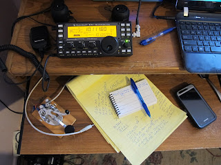 Craig NM4T sponsored another QRP evening on Monte Sano Saturday night. It included delicious BBQ and pie. This was followed by a contest among four two man teams. We had run into Bob WB8PAF from Panama City at the hamfest. Marv and I encouraged him to be in the contest as Bob is an excellent CW op. So Bob and I made a team we called the Beach Boys. There were two stations for the contest. One was my KX3 and Marv provided his buddipole for 20 meters. The other station was Jim Stafford W4QO's KX3 and a loop antenna on 40. We were allotted about 40 minutes of operating time. Half was on the 20 meter station and the other half on the 40 meter station. It was tough go as there was not much on the bands. Bob made four contacts and one was Canadian DX which would count for 50 points. The scores were not figured up but, we think the Beach Boys did well.