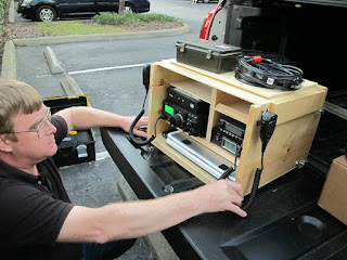Marv bought a slinky antenna. He tested it out in the hotel parking lot late in the afternoon and into the evening. Marv has his FT 897 and accessories in his Ham Box 1000. See the pictures. Marv snagged his first New Hampshire QSO. He had been trying for NH ever since he got his license. He was born there. We made it back safely Sunday and made a few 146.52 contacts on the way. So all good for another Hamcation. It was enjoyable. There was quite a contingent of Panama City folks here having fun.