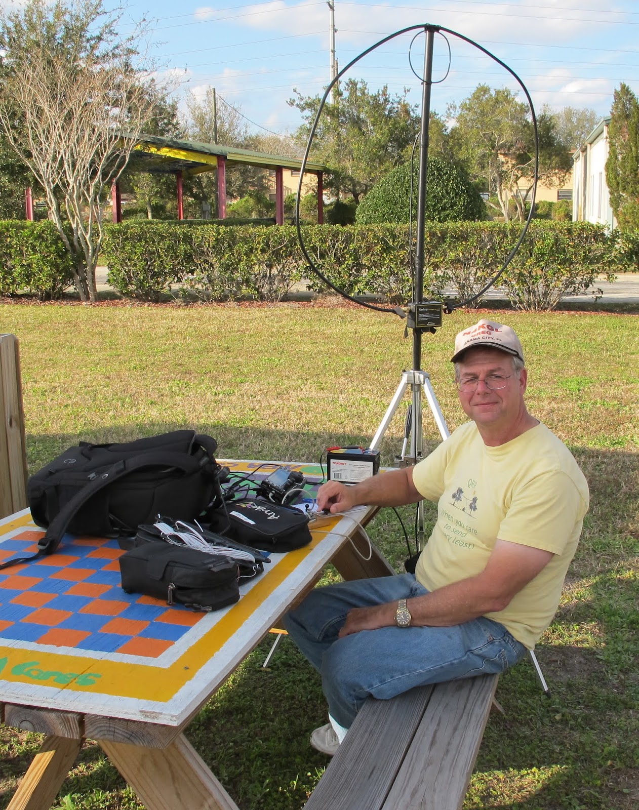 It was a pleasure to attend the QRP forum in the afternoon setup by Jim K4AHO. The excellent presentation was by Jim W4QO on DX and QRP. The gist is that QRP makes ham radio more interesting and challenging. I was invited to give a demo of the KX3 and the Alexloop after the forum. The weather was perfect. I am rather proud that I can pack the KX3 and the Alexloop into a backpack which also includes a tripod. The Alexloop gained the most attention. My claim is it is the most convenient portable antenna to setup. It is so small and self contained compared to a dipole or just about any wire antenna. So I chose 20 meters around 14.060. My first call was to N8ZYA. Darn! he did not hear me. The second call was to KO1U Mark. I got him and he even gave me a 599. I always enjoy meeting QRP folks at the hamfests and Orlando came through. Thanks Jim and Kelly.