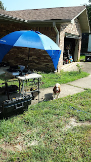 My first QSO was on 40 meters. It was K4PDM in Kentucky. He was not in any sprint, After that I picked up four SKCC stations on 20 meters CW. It comes in handy to be in the SKCC. They like to work me for credit. In RaDAR you want to leverage on any event you can. I probably should not have had Suzy out there but she dug a nice hole find the cool ground. The shade of the Oak did help.