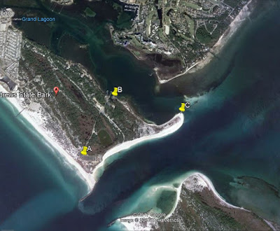 Our chosen site is St. Andrews State Park near Panama City, FL. I have shown three stops A, B & C on the photo below. The distance between them is one kilometer. We will progress through the stops A-B-C-B-A as far as we can in 4 hours. The four hour period will be 1400 - 1800 UTC. We have the option to extend our outing and keep going after the four hours if we like. RaDAR transitions over 24 hours count for the special WWFF-KFF POTA RaDAR Awards. The park is reference KFF-1917.