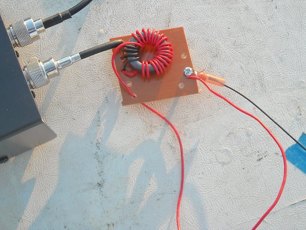 I wound the FT-114-43 toroid with 4 turns on transmitter side and 32 on the antenna side. I setup a sloping half wave with the high end 24 feet high. I could not get the SWR down and the noise bridge had the R near zero. So I started taking off turns on the antenna coil and the SWR got better and better until 19 turns it was about 1.5 to 1 then I shortened the antenna a bit and it went to 1 to 1. This might be a mirage but I'll take it. So I might try to make some contacts with this wire and see if it is an antenna or a dummy load. With the 4.75 ratio I ended up with that would say the antenna has an impedance around 1200 ohms. I did all this testing in the driveway and I may have gotten a couple of passer-bys interested in ham radio.